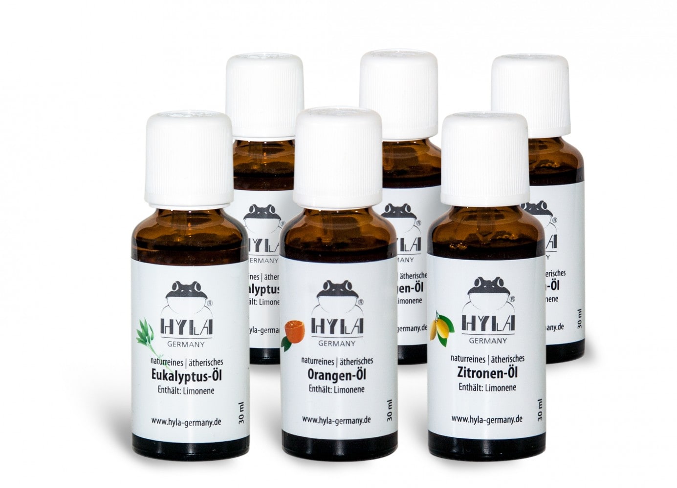 Berauschen Sie Ihre Sinne mit ganz besonderen Düften und geben Sie Ihren Räumen eine persönliche Note. HYLA Duftstoffe gibt es in acht verschiedenen natürlichen Duftnuancen: Everest, Exotik, Limone, Lavendel, Vanille-Erdbeere, Pinie, Eukalyptus und Minze. Aromatisieren Sie die Luft mit Ihrem HYLA Water Air Freshener oder dem HYLA GST durch Beigabe von HYLA Duftstoffen.